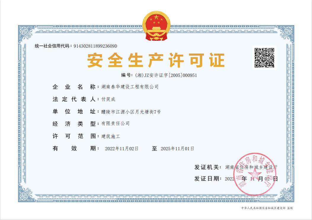 湖南泰華建設工程有限公司一家房屋建筑工程施工總承包貳級,水利水電工程施工總承包貳級,市政公用工程施工總承包貳級,鋼結構工程施工專業承包二級,消防設施工程專業承包貳級,建筑裝修裝飾工程專業承包貳級;公路工程施工總承包叁級,鋼結構、體育設施、環保工程、公路路面工程、公路路基工程專業承包叁級企業?!?/div>